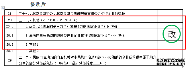 新增第4行项目名称修改为“1.一般股息红利等权益性投资收益免征企业所得税”;