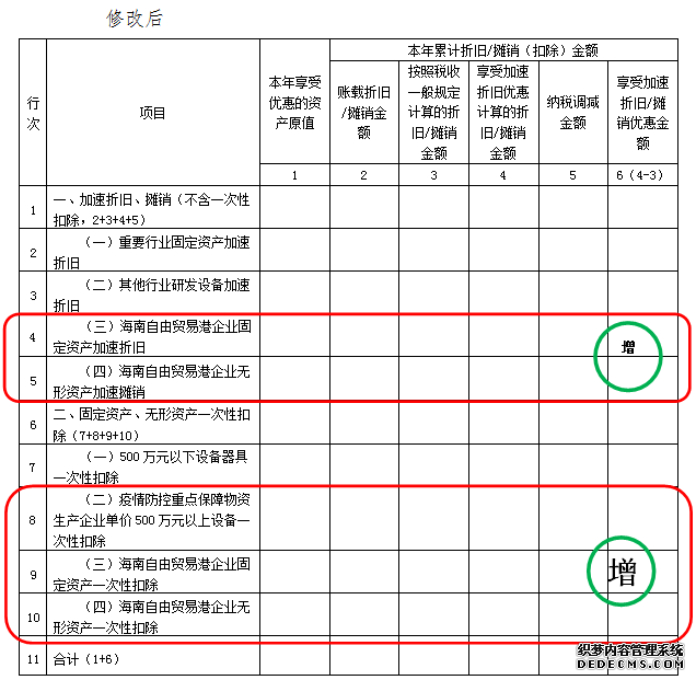 新增第5行项目名称修改为“(四)海南自由贸易港企业无形资产加速摊销”;